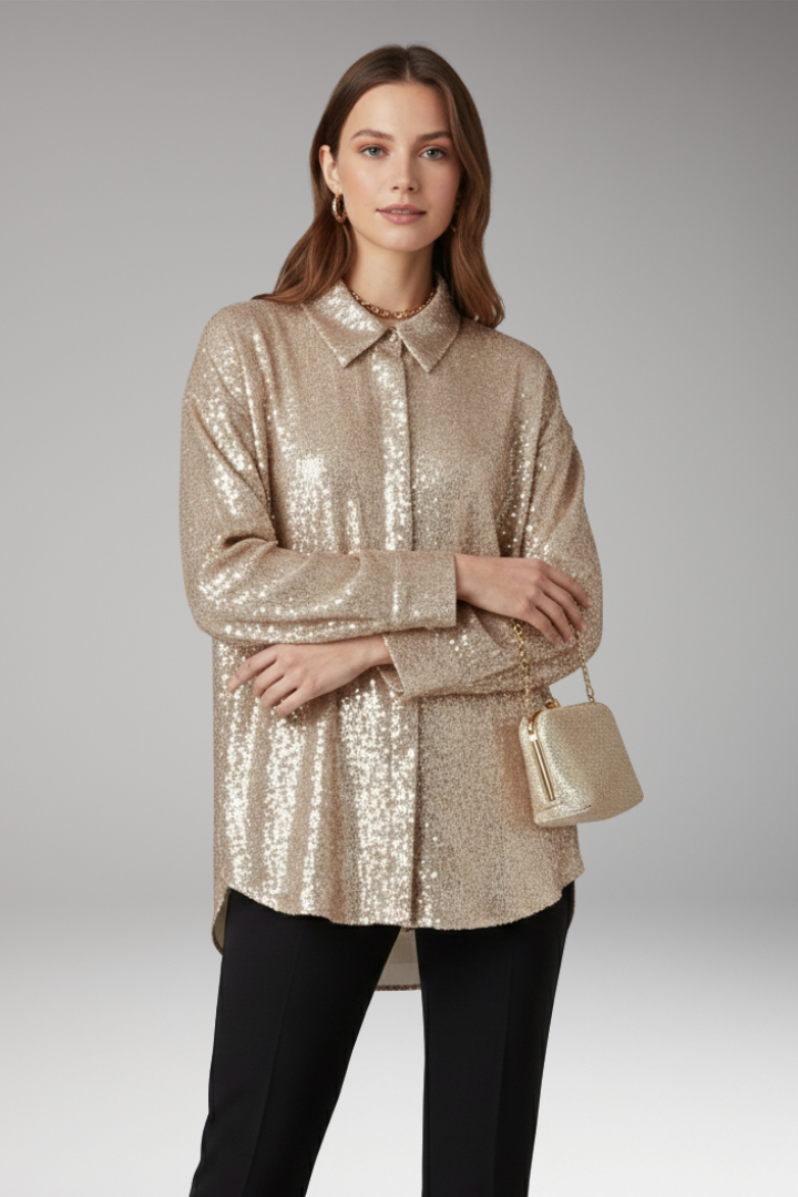 Women’s Oversized Blouse with Sequined Surface and Structured Cut