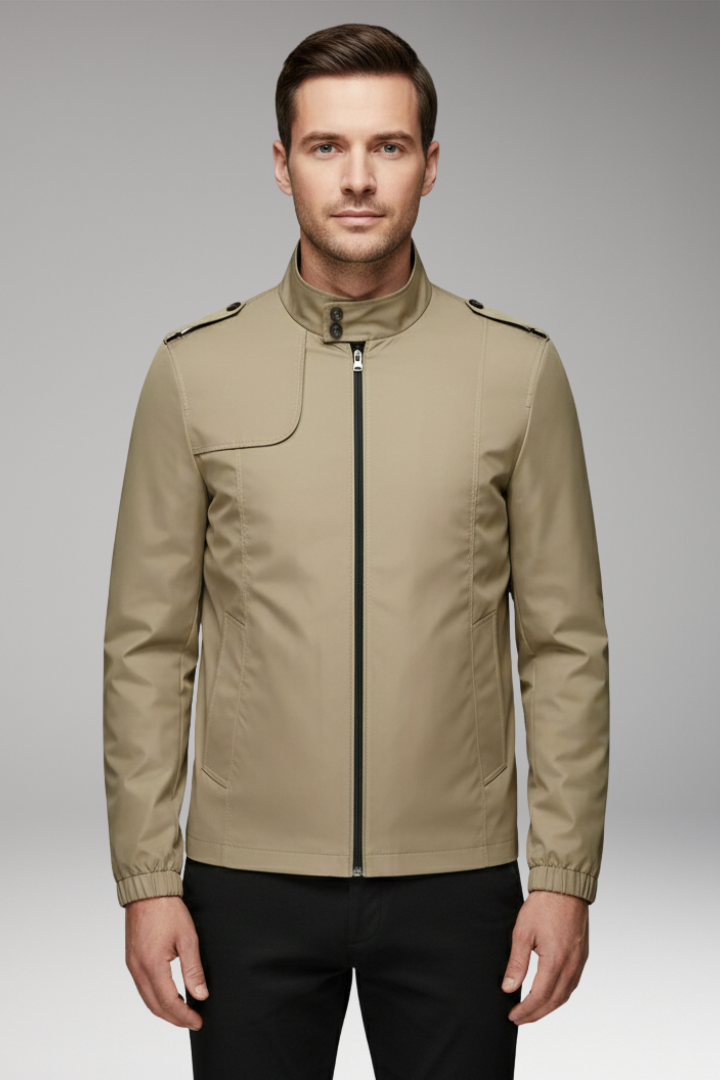 Men’s Jacket with Stand-Up Collar and Zip Closure