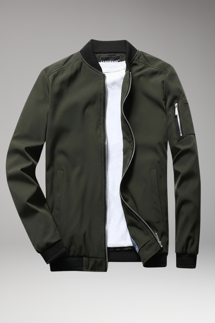 Men’s Bomber Jacket with Zipper and Sleeve Pocket