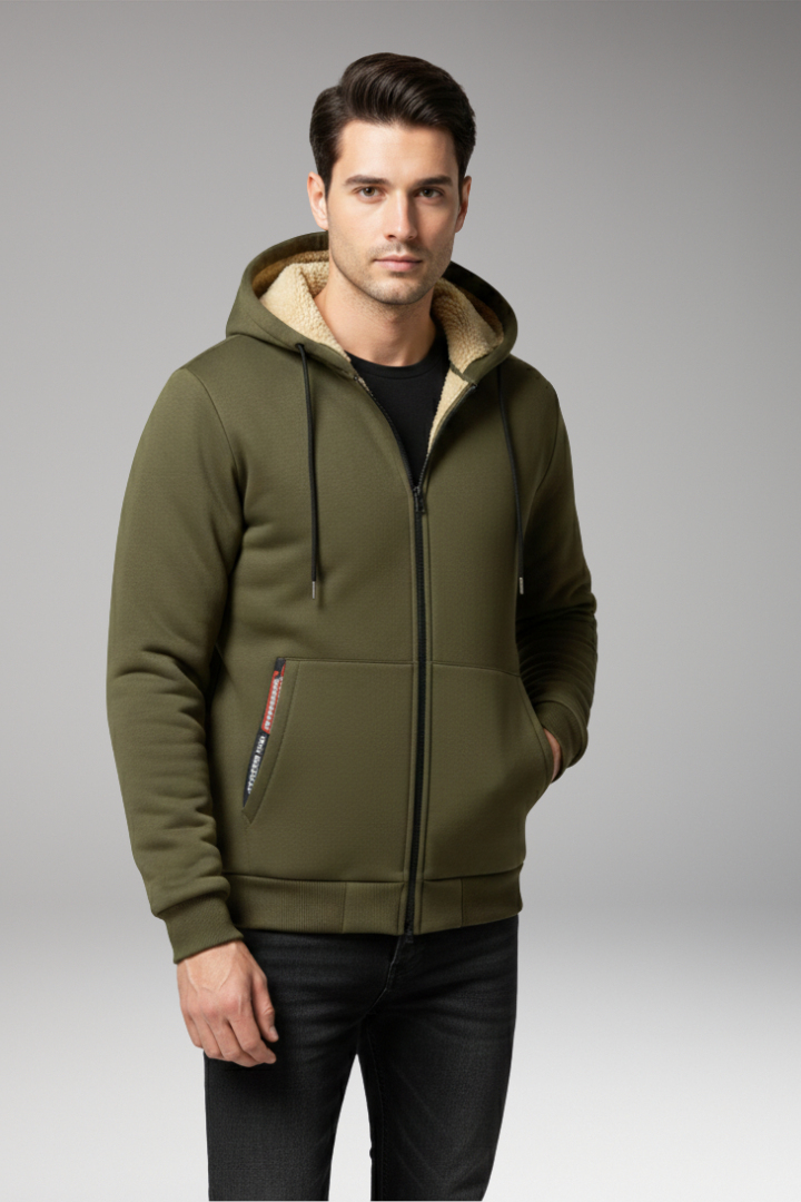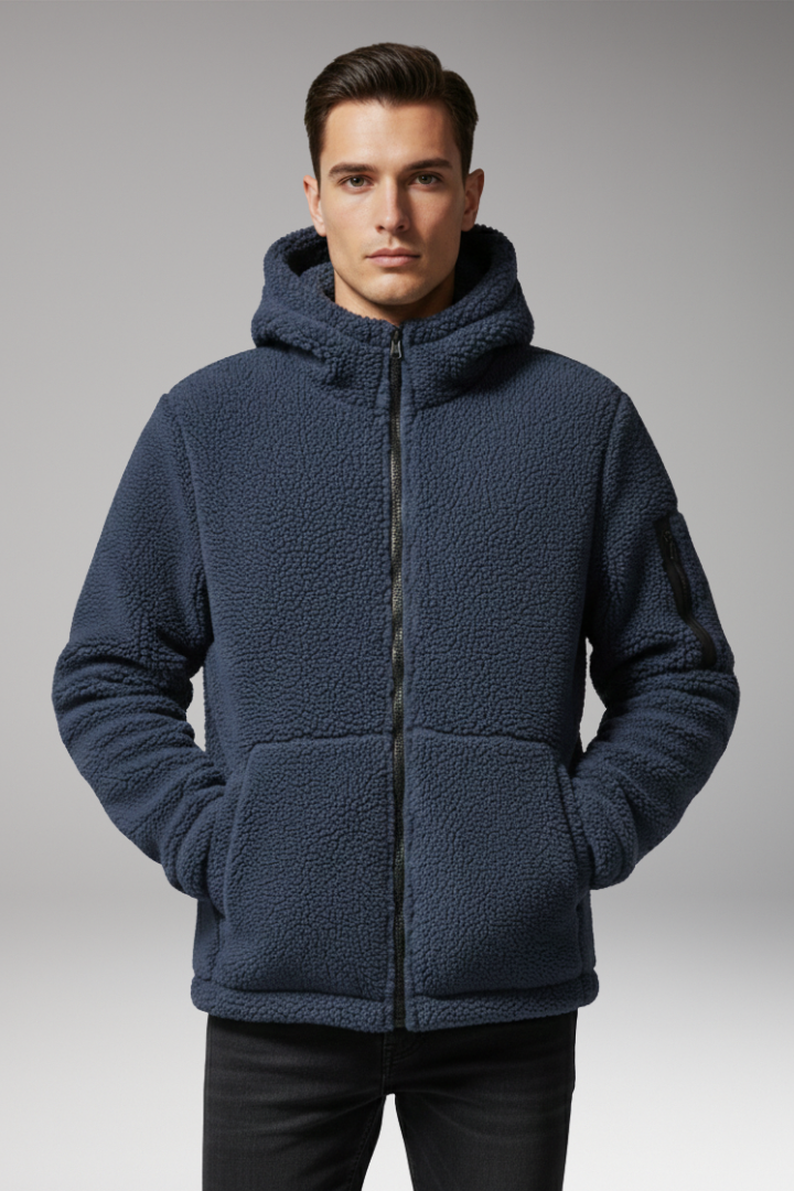 Men’s Fleece Jacket with Hood and Zip Pocket