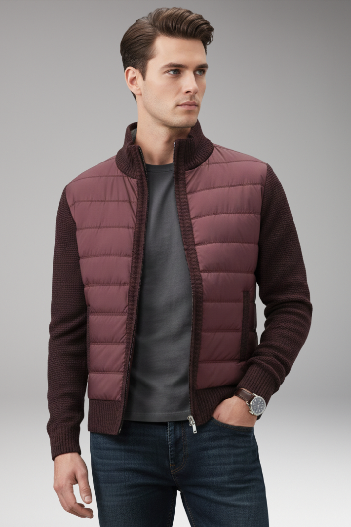 Men’s Jacket with Quilted Body and Knitted Sleeves
