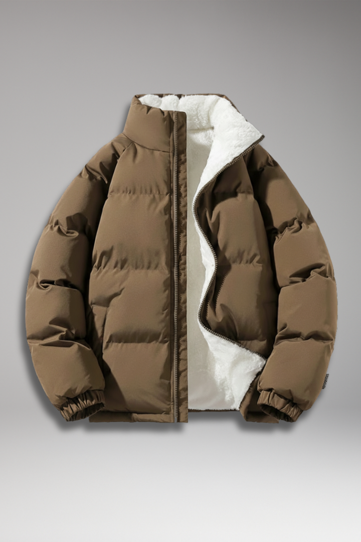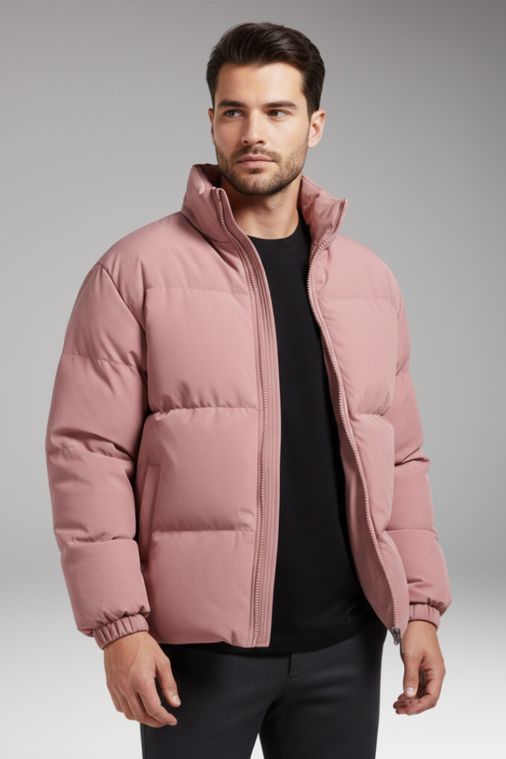Men’s Padded Jacket with Stand Collar and Zipper