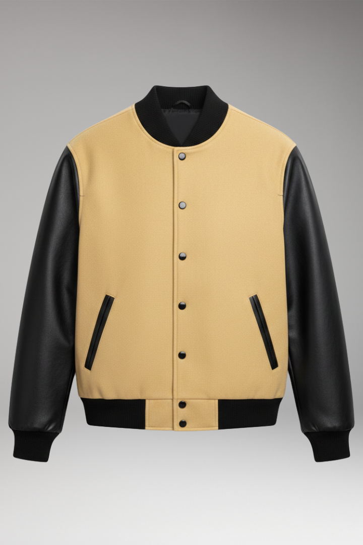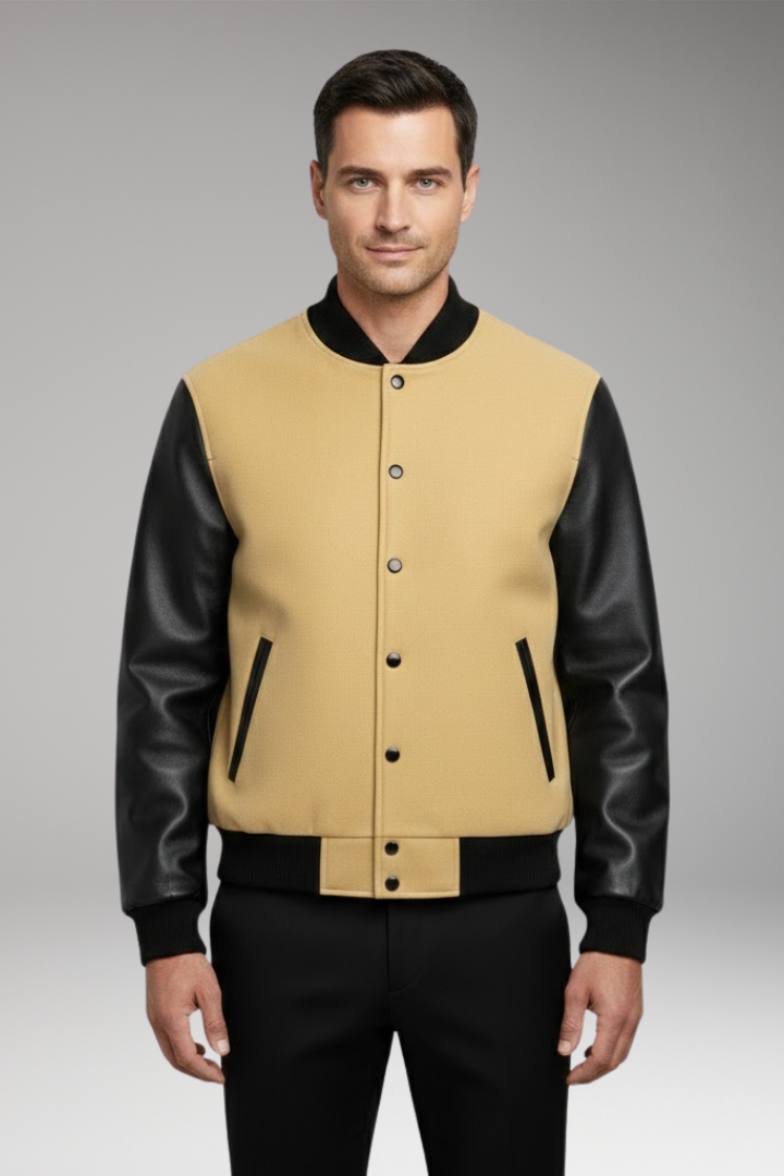 Men's Sporty Bomber Jacket with Contrasting Sleeves and Secure Buttons