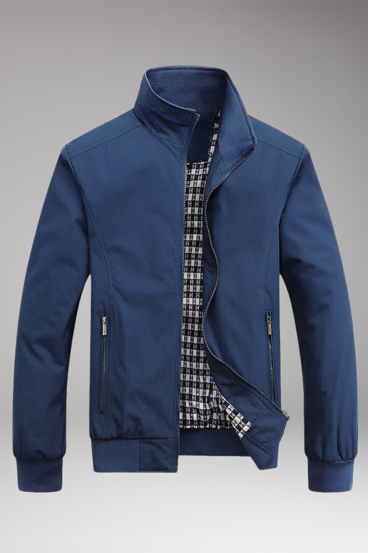 Men's Harrington Jacket with Zip Closure and Checked Lining