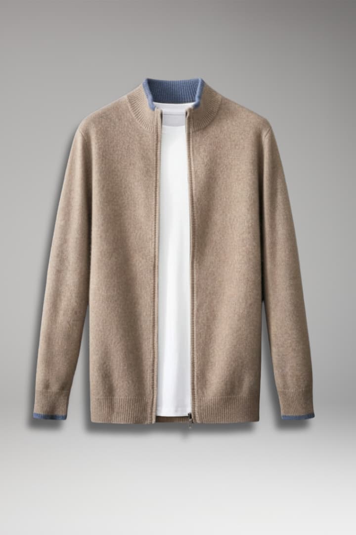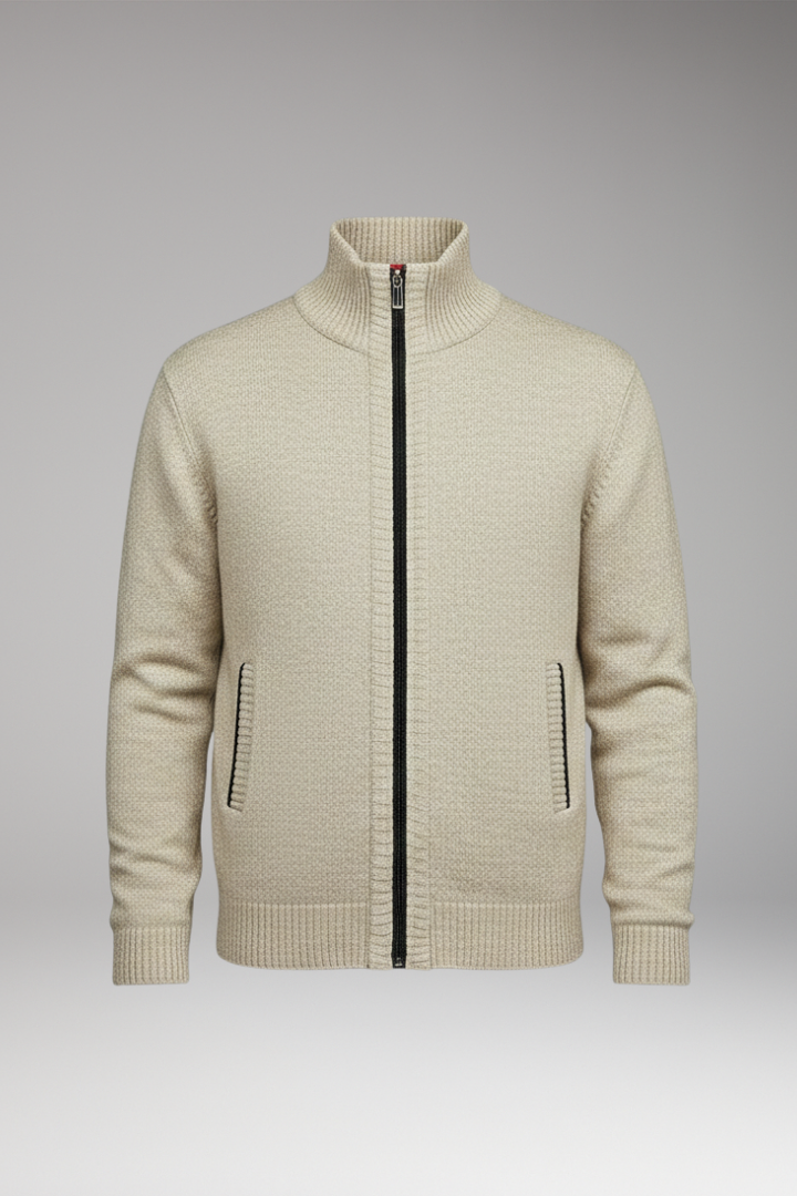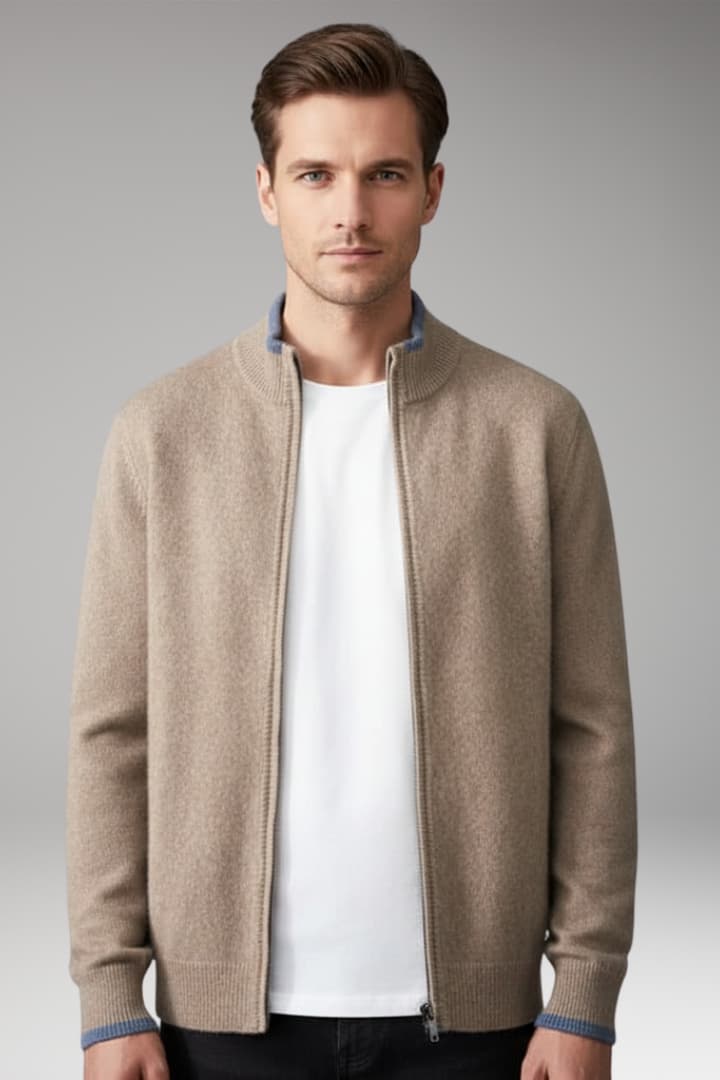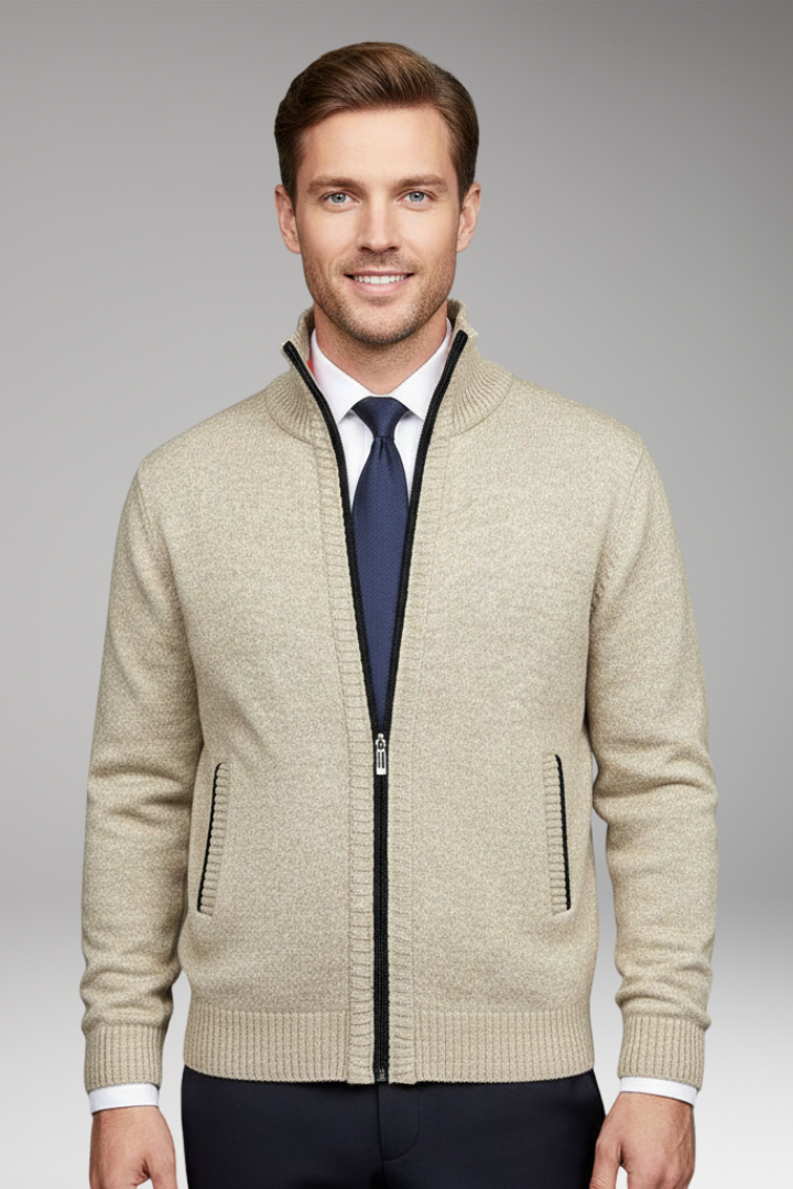 Men’s Zip Jacket with Fine-Knit Collar and Cuff Details