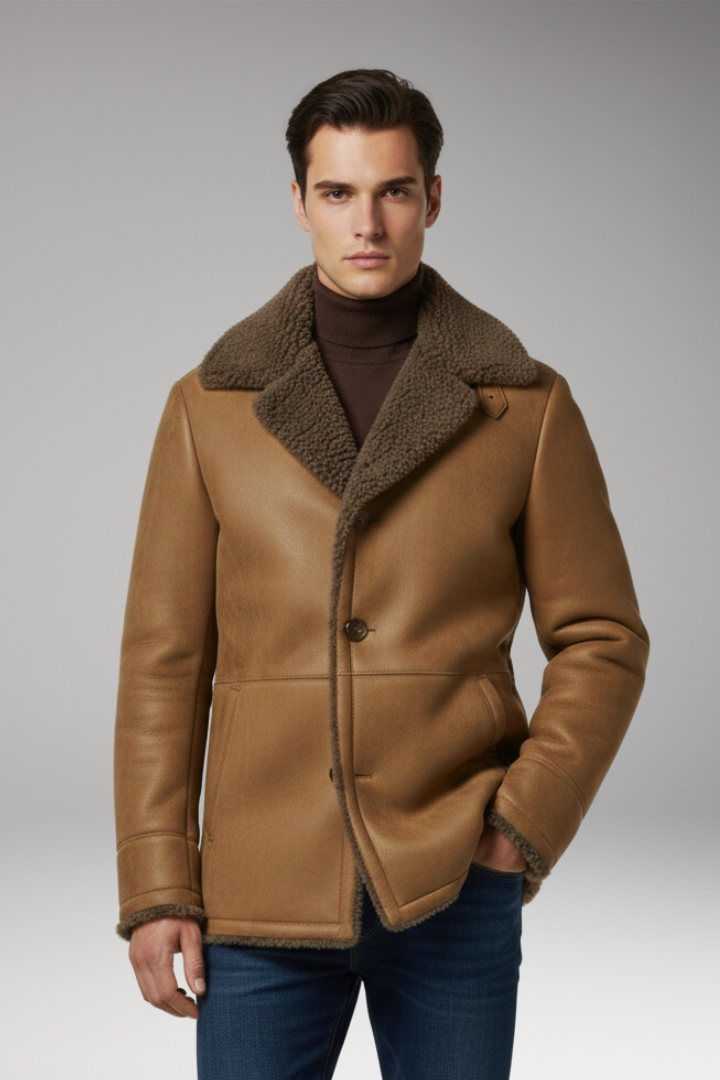Men’s Jacket with Wide Collar and Fleece Lining
