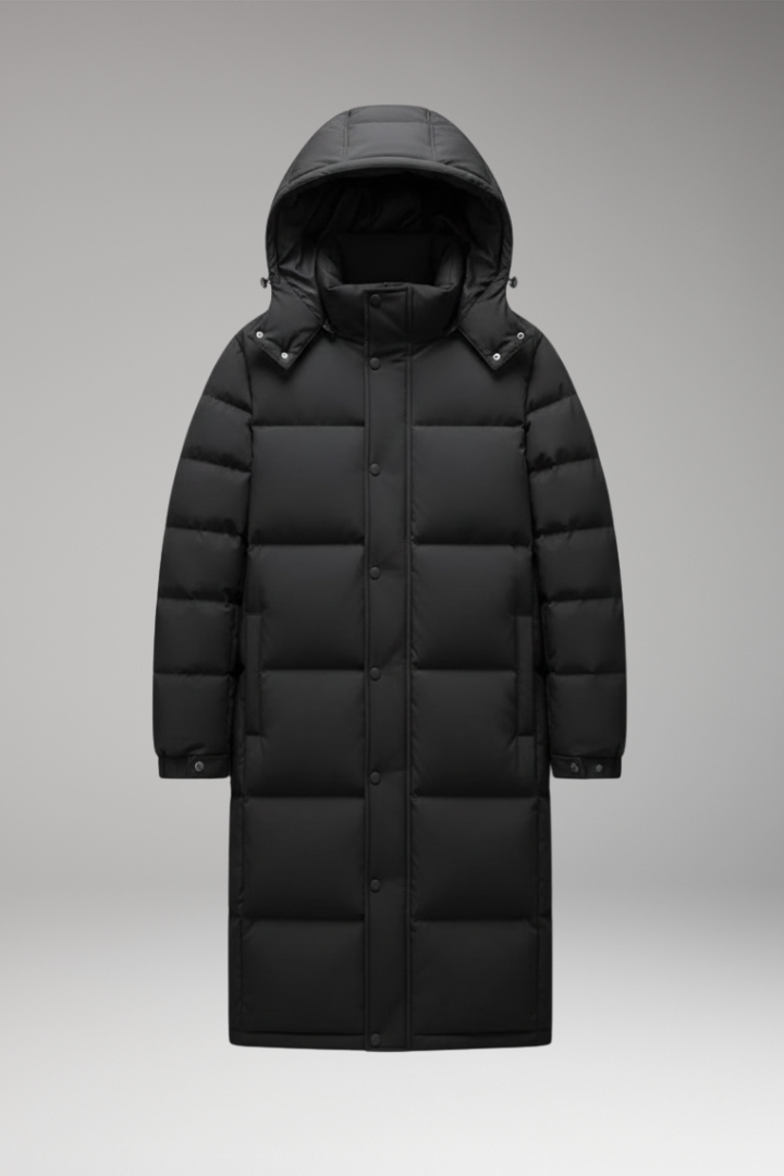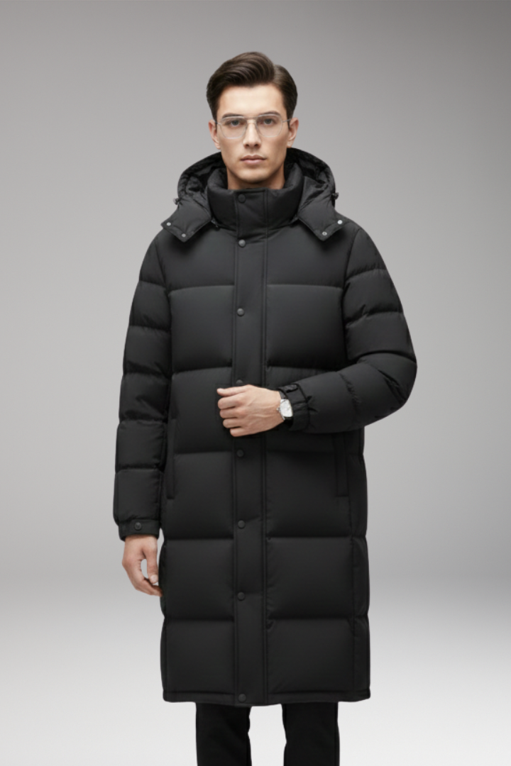 Men’s Long Winter Jacket with Hood and Pockets