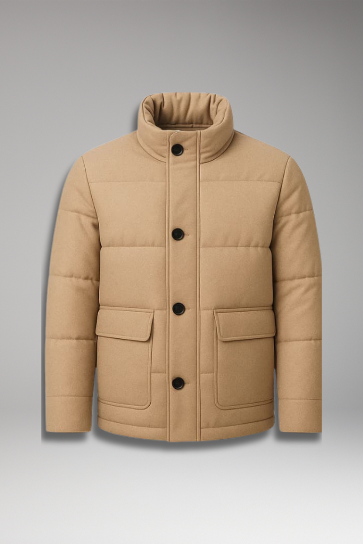 Men’s Padded Jacket with Stand Collar and Long Sleeves