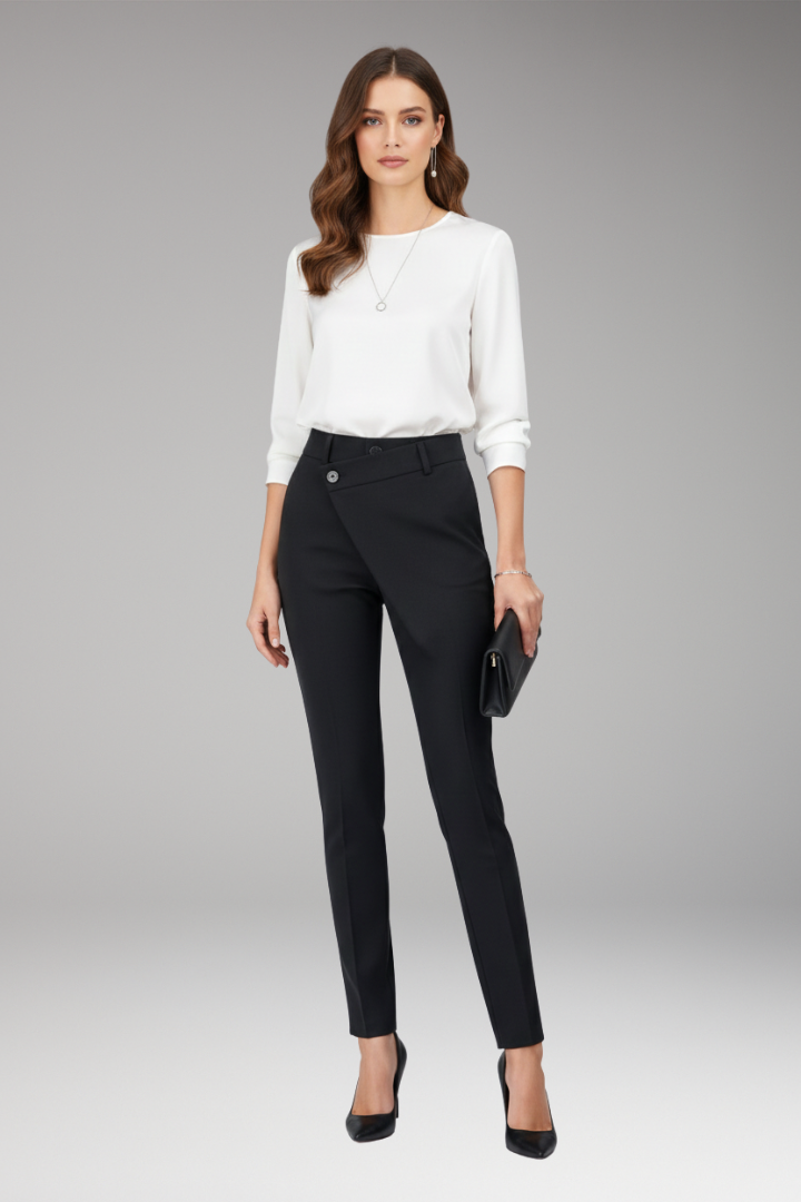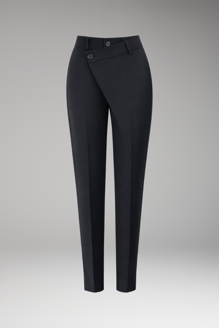 Women’s Pants with Asymmetric Waistband and Slim Legs