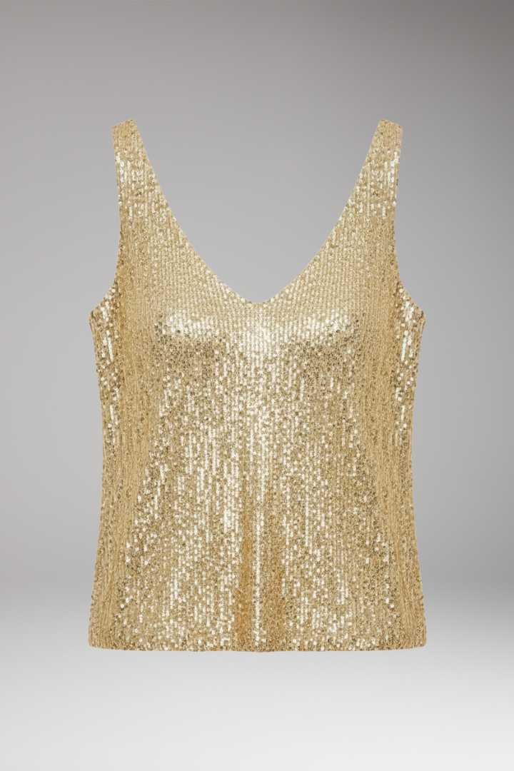 Women’s Top with V-Neckline and Sequin Surface
