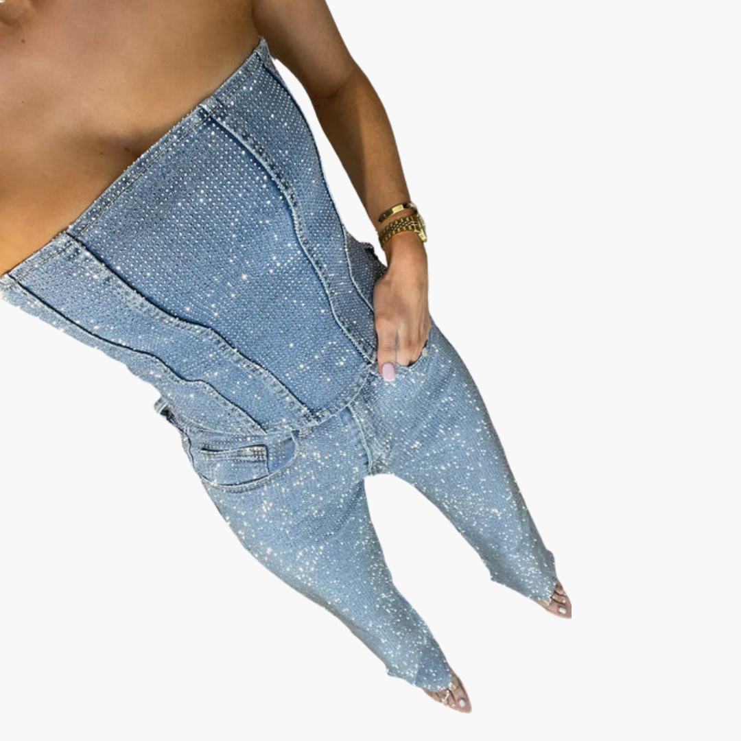 Strapless Glitter Jumpsuit for Women with Fitted Bodice and Straight-Leg Design
